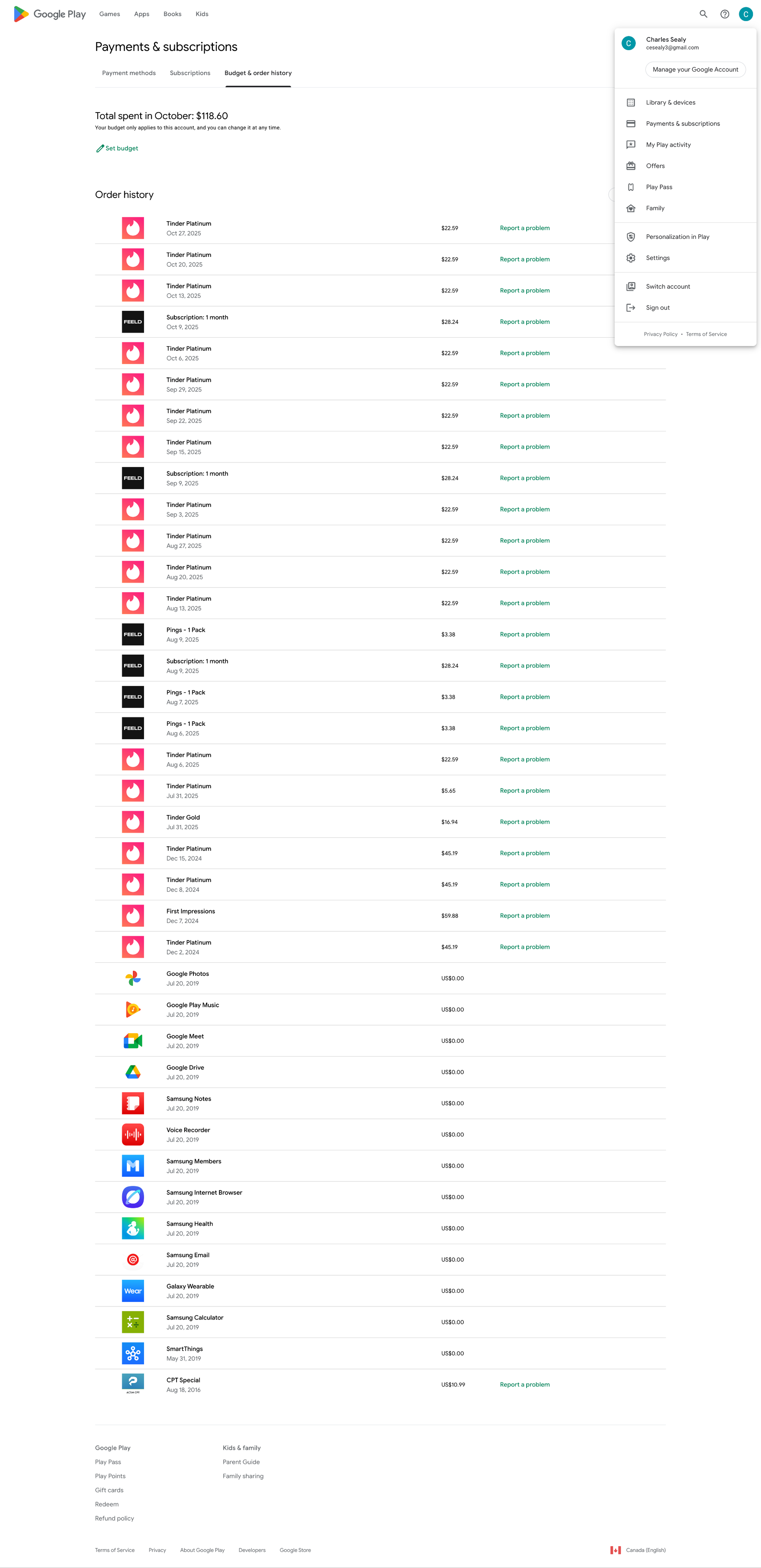 - Throughout the period during which repayment of the $20,000 CAD remained outstanding, I observed active monthly charges connected to dating applications on an account I previously had shared access to. This led me to believe that financial constraints were not the only reason for delayed repayment.